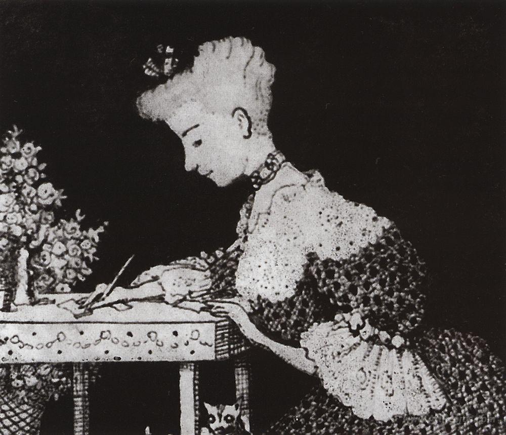 We offer you a handcrafted reproduction on canvas of the famous artwork 'The Lady behind the Desk (Anonymous Letter)' by Konstantin Somov, from the Reproduction Museum.