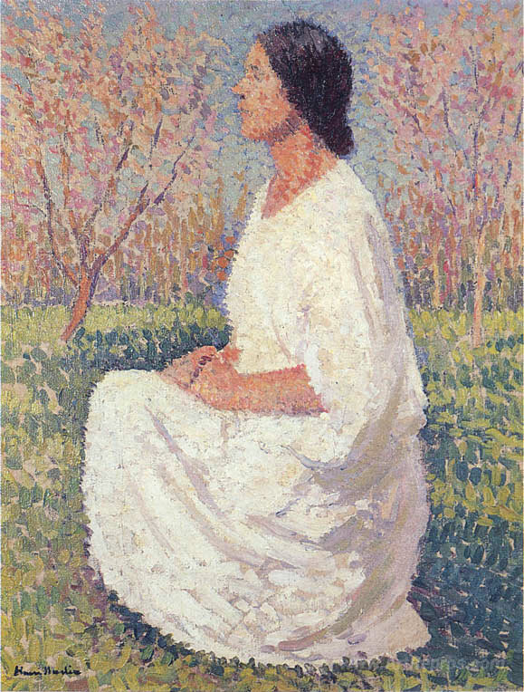 We offer you a handcrafted reproduction on canvas of the famous artwork 'The Muse' by Henri Martin, from the Reproduction Museum.