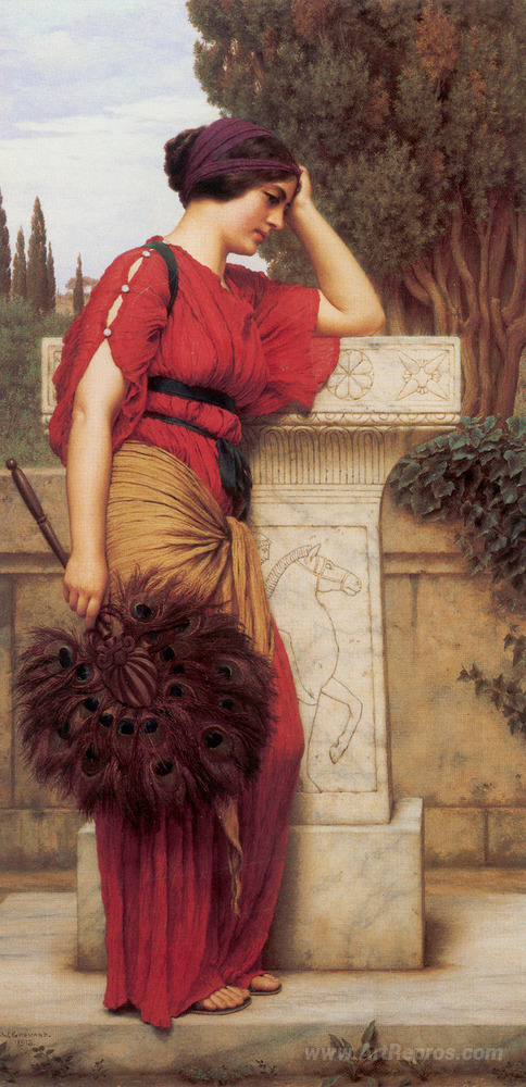 We offer you a handcrafted reproduction on canvas of the famous artwork 'The Thoughtful One' by John William Godward, from the Reproduction Museum.