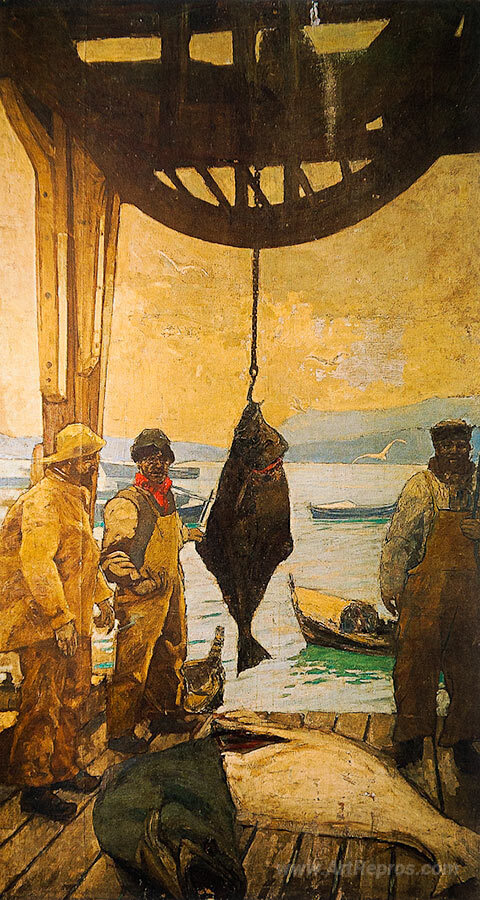 We offer you a handcrafted reproduction on canvas of the famous artwork 'Trading post in Murman' by Konstantin Korovin, from the Reproduction Museum.