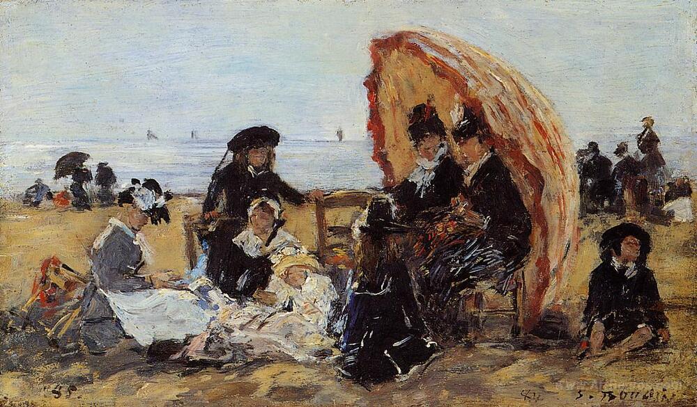 Welcome to our exquisite collection of oil paintings, where artistry meets elegance. Among our featured masterpieces is Trouville, on the Beach Sheltered by a Parasol, a remarkable work by the pioneering French artist Eugene Boudin. Known for his innovative approach to capturing the interplay of light and atmosphere, Boudin masterfully transports viewers to a serene coastal scene, evoking the tranquil leisure of beach life in the late 19th century.