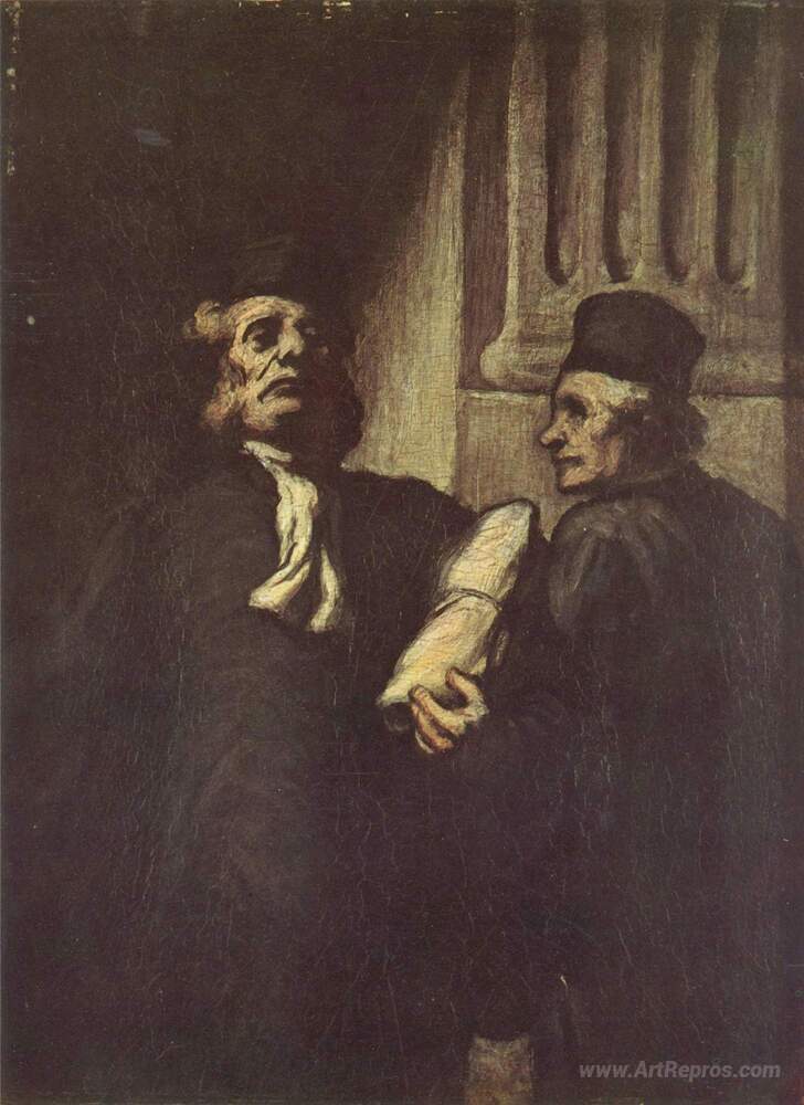 Welcome to our curated collection of oil paintings, where art meets sophistication. Among our distinguished offerings, we proudly feature the exceptional work of Honoré Daumier, a master of social commentary and emotional depth. His renowned painting, Two Lawyers, captures the essence of legal duality and human expression, showcasing Daumier's unparalleled ability to blend realism with satire.