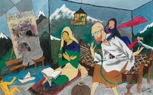 We offer you a handcrafted reproduction on canvas of the famous artwork 'Untitled (Husain's Family)' by M.F. Husain, from the Reproduction Museum.