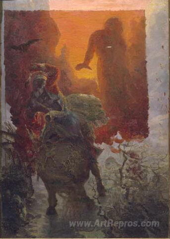 We offer you a handcrafted reproduction on canvas of the famous artwork 'Warrior' by Nicholas Roerich, from the Reproduction Museum.