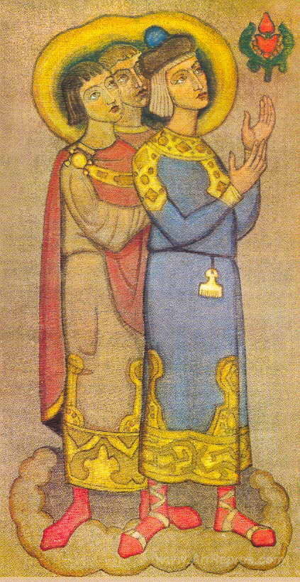 We offer you a handcrafted reproduction on canvas of the famous artwork 'Young men, successors' by Nicholas Roerich, from the Reproduction Museum.
