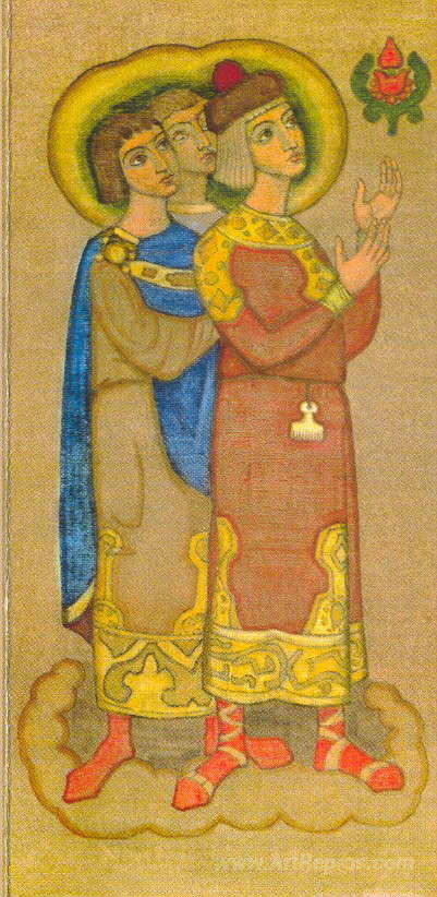 We offer you a handcrafted reproduction on canvas of the famous artwork 'Young men, successors' by Nicholas Roerich, from the Reproduction Museum.