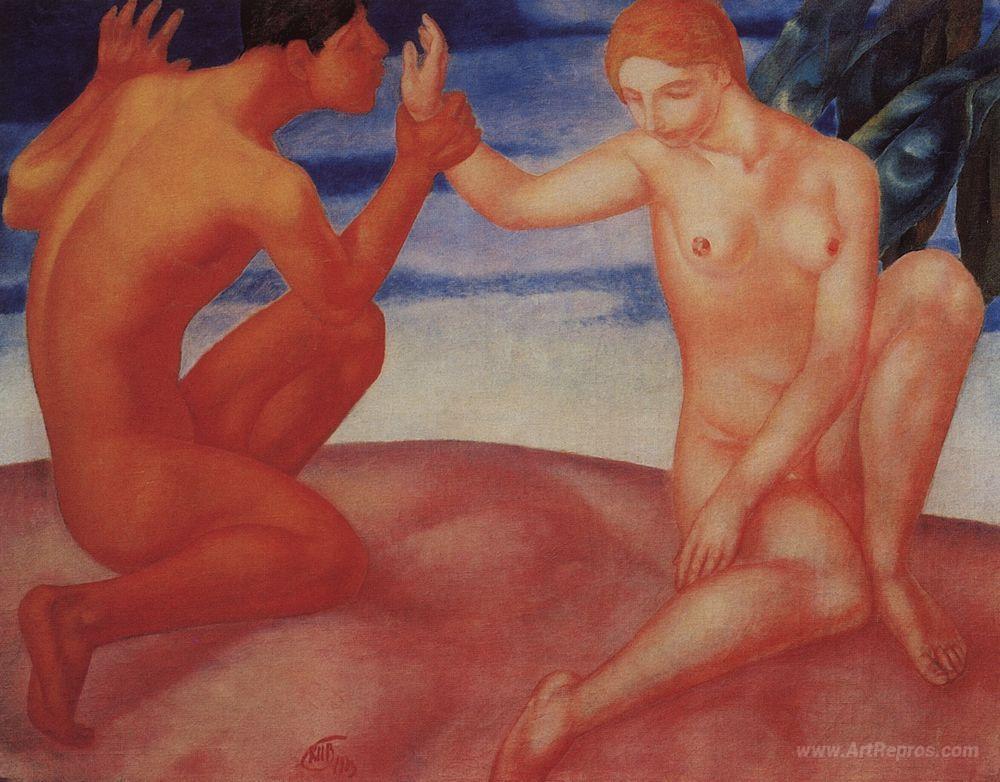 We offer you a handcrafted reproduction on canvas of the famous artwork 'Youth (Kiss) ' by Kuzma Petrov-Vodkin, from the Reproduction Museum.