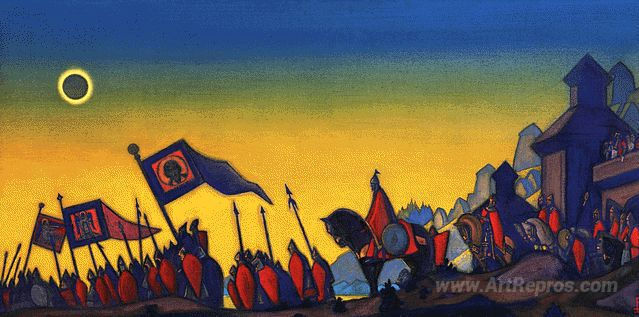 We offer you a handcrafted reproduction on canvas of the famous artwork 'Prince Igor Campaign' by Nicholas Roerich, from the Reproduction Museum.