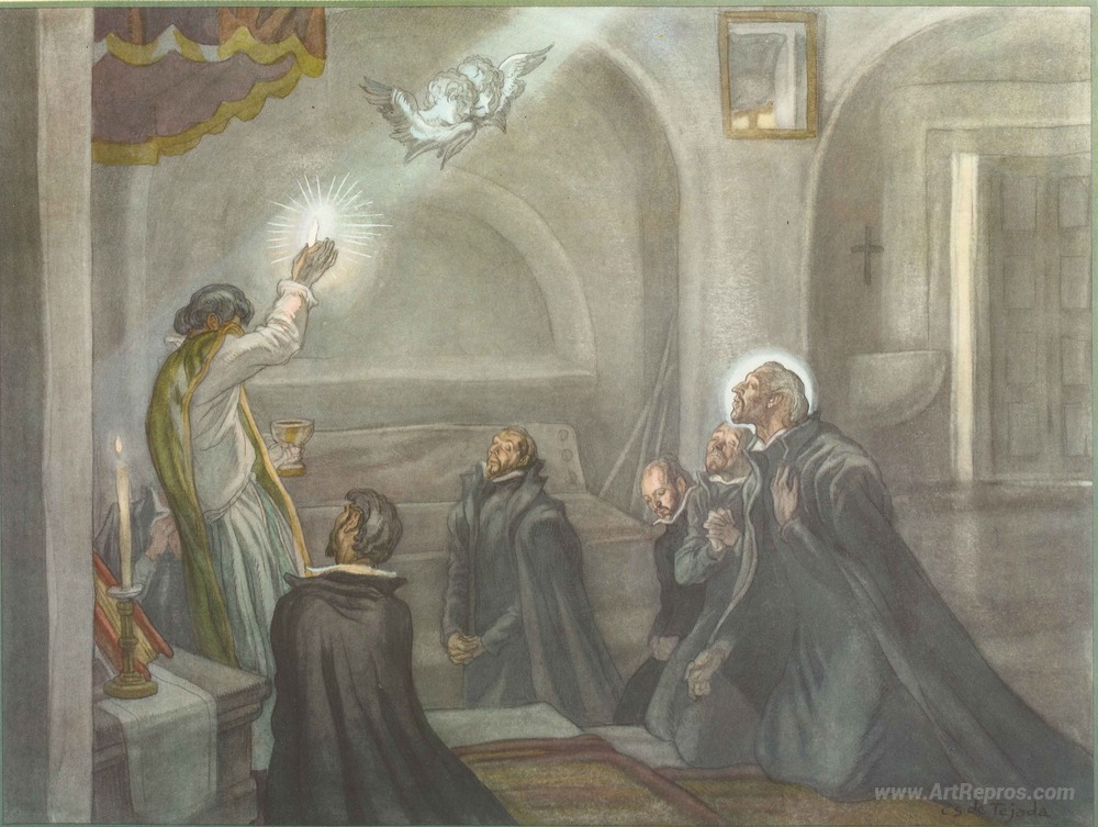 We offer you a handcrafted reproduction on canvas of the famous artwork 'The Life of St. Ignatius Loyola. Plate 5. Ignatius and the first' by Carlos Saenz de Tejada, from the Reproduction Museum.