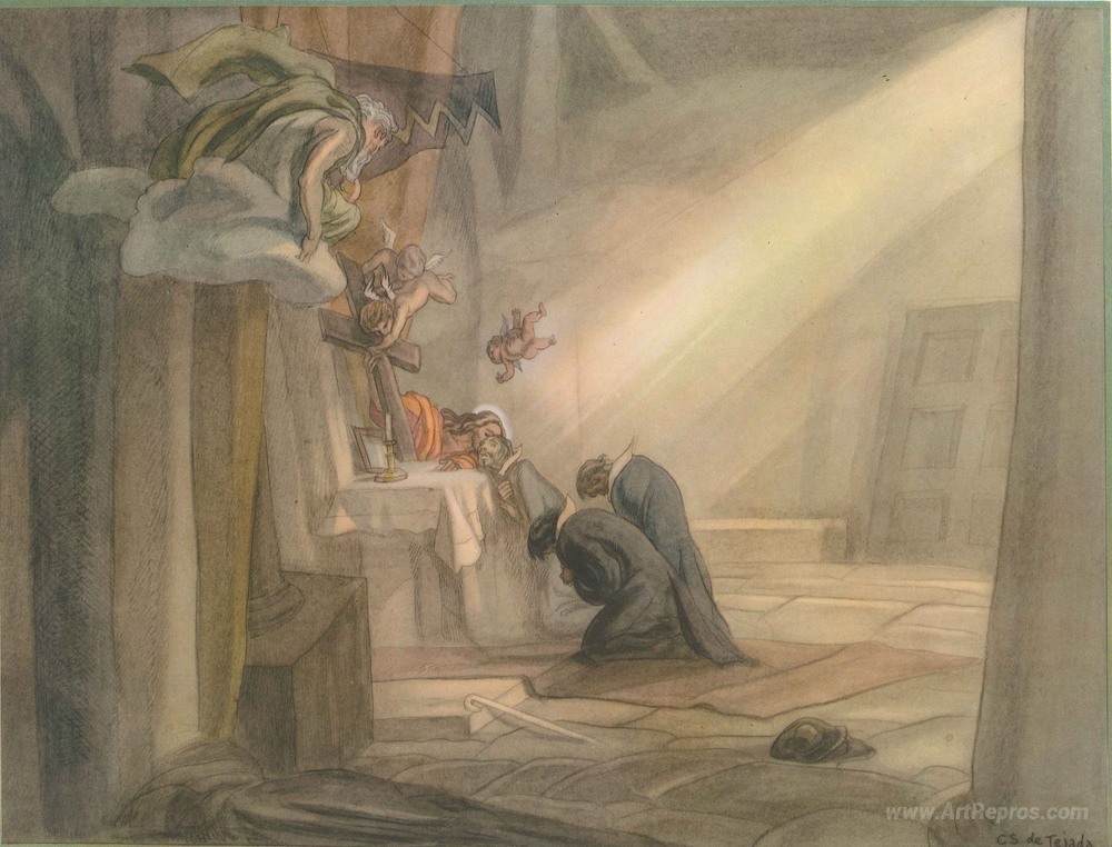 We offer you a handcrafted reproduction on canvas of the famous artwork 'The Life of St. Ignatius Loyola. Plate 6. The vision at La Stor' by Carlos Saenz de Tejada, from the Reproduction Museum.