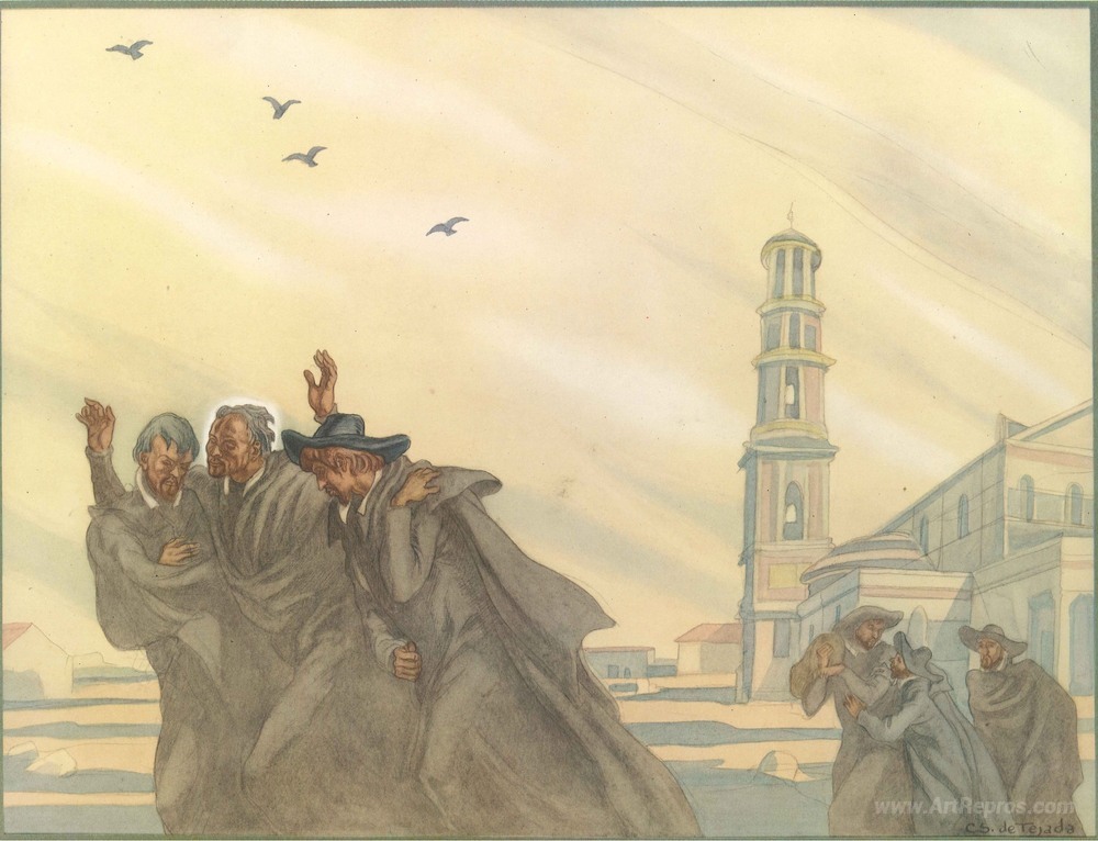 Welcome to our curated collection of exquisite oil paintings, where art meets elegance. Among our featured masterpieces is The Life of St. Ignatius Loyola. Plate 9. After their solemn vow by the renowned artist Carlos Saenz de Tejada. With a rich background rooted in Spanish heritage, Saenz de Tejada skillfully intertwines historical narrative and emotional depth, inviting viewers to engage intimately with the story he portrays.