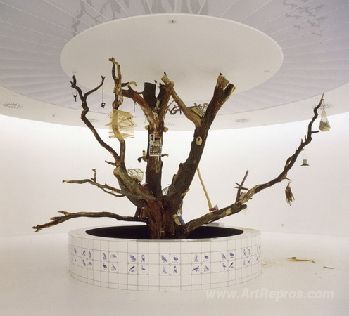 We offer you a handcrafted reproduction on canvas of the famous artwork 'Library for the Birds of Antwerp' by Mark Dion, from the Reproduction Museum.