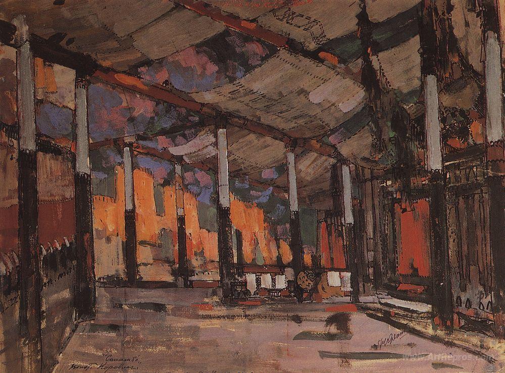 We offer you a handcrafted reproduction on canvas of the famous artwork 'Military tent Mato ' by Konstantin Korovin, from the Reproduction Museum.