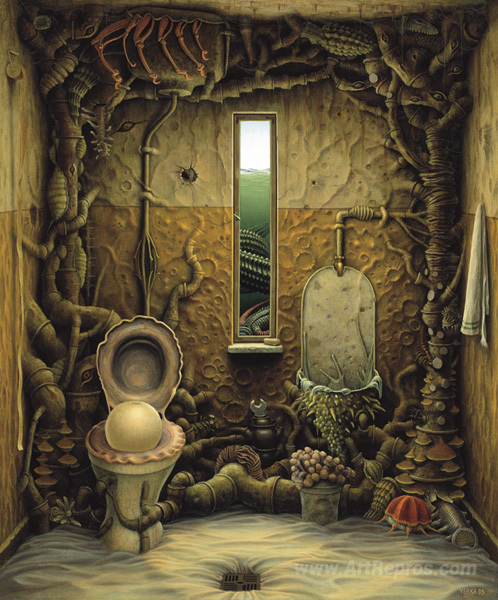 We offer you a handcrafted reproduction on canvas of the famous artwork 'Oceanic bathroom' by Jacek Yerka, from the Reproduction Museum.