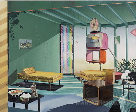 We offer you a handcrafted reproduction on canvas of the famous artwork 'Zimmer' by Matthias Weischer, from the Reproduction Museum.