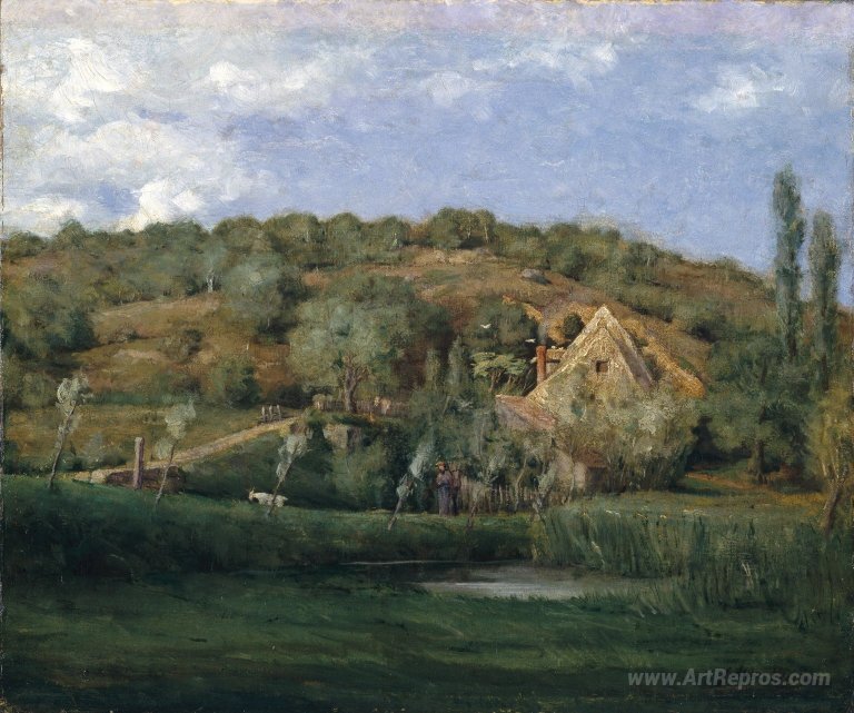 We offer you a handcrafted reproduction on canvas of the famous artwork 'A French Homestead ' by Julian Alden Weir, from the Reproduction Museum.