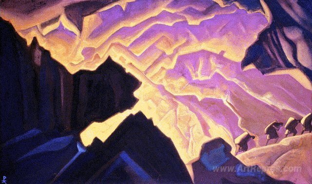 We offer you a handcrafted reproduction on canvas of the famous artwork 'Captors of fire' by Nicholas Roerich, from the Reproduction Museum.
