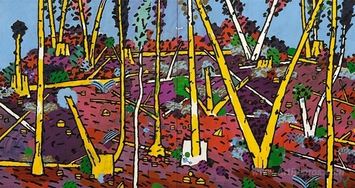 We offer you a handcrafted reproduction on canvas of the famous artwork 'Cottlesbridge Landscape' by Dale Hickey, from the Reproduction Museum.
