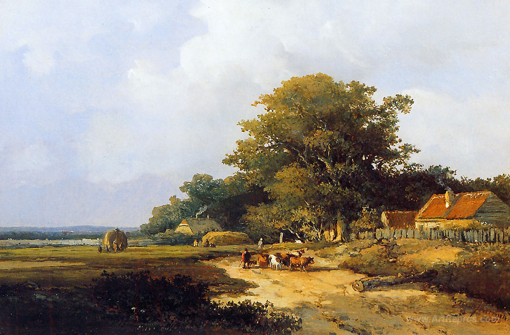 Welcome to our curated collection of oil paintings, where artistry meets elegance. Among our featured works is Farmer with Herd on Country Road by the renowned Dutch artist Johan Hendrik Weissenbruch. Born in 1824, Weissenbruch was celebrated for his ability to capture the tranquility of rural landscapes, using a technique that masterfully balances light and shadow. His paintings reflect a deep appreciation for nature and an understanding of the relationship between humanity and the environment.