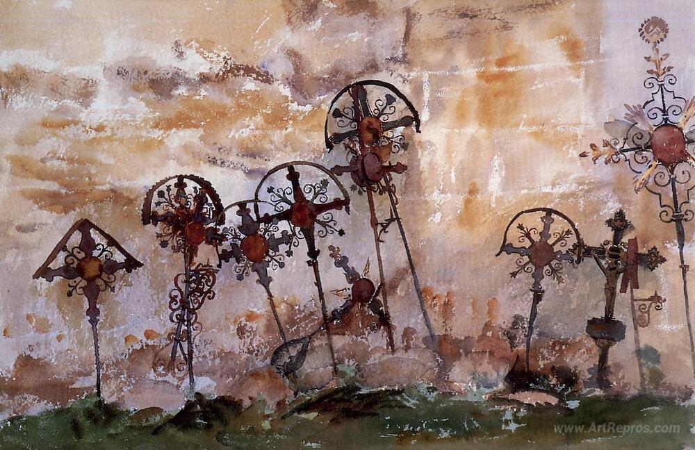 We offer you a handcrafted reproduction on canvas of the famous artwork 'Graveyard in the Tyrol' by John Singer Sargent, from the Reproduction Museum.