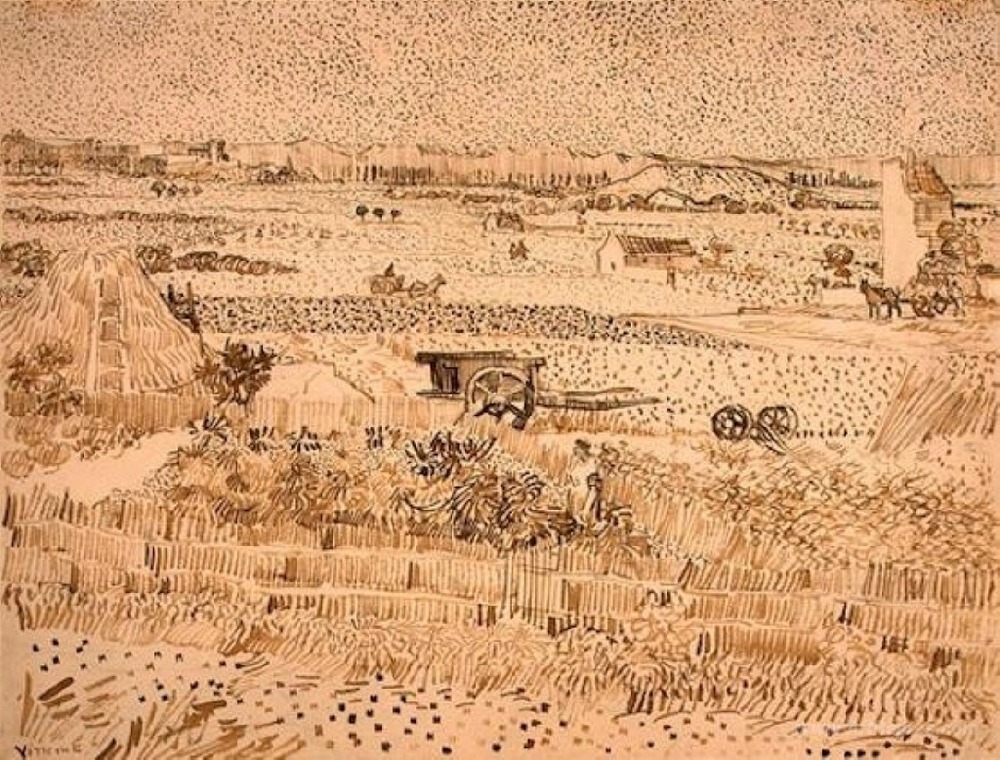 We offer you a handcrafted reproduction on canvas of the famous artwork 'Harvest Landscape' by Vincent van Gogh, from the Reproduction Museum.