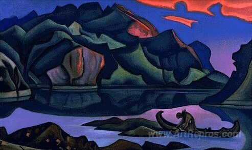 We offer you a handcrafted reproduction on canvas of the famous artwork 'Hidden Treasure' by Nicholas Roerich, from the Reproduction Museum.