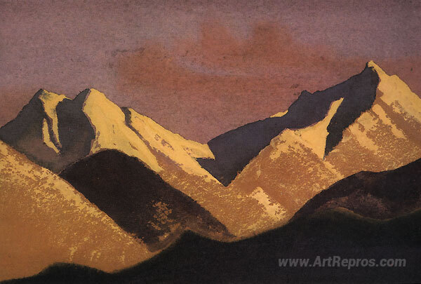 We offer you a handcrafted reproduction on canvas of the famous artwork 'Himalayas. Mountains lit by sunset.' by Nicholas Roerich, from the Reproduction Museum.