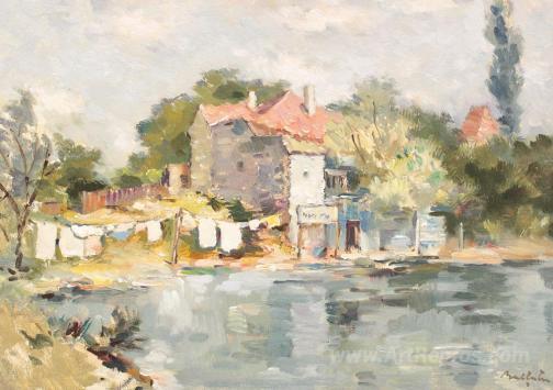 We offer you a handcrafted reproduction on canvas of the famous artwork 'Houses in Bretania' by Adam Baltatu, from the Reproduction Museum.