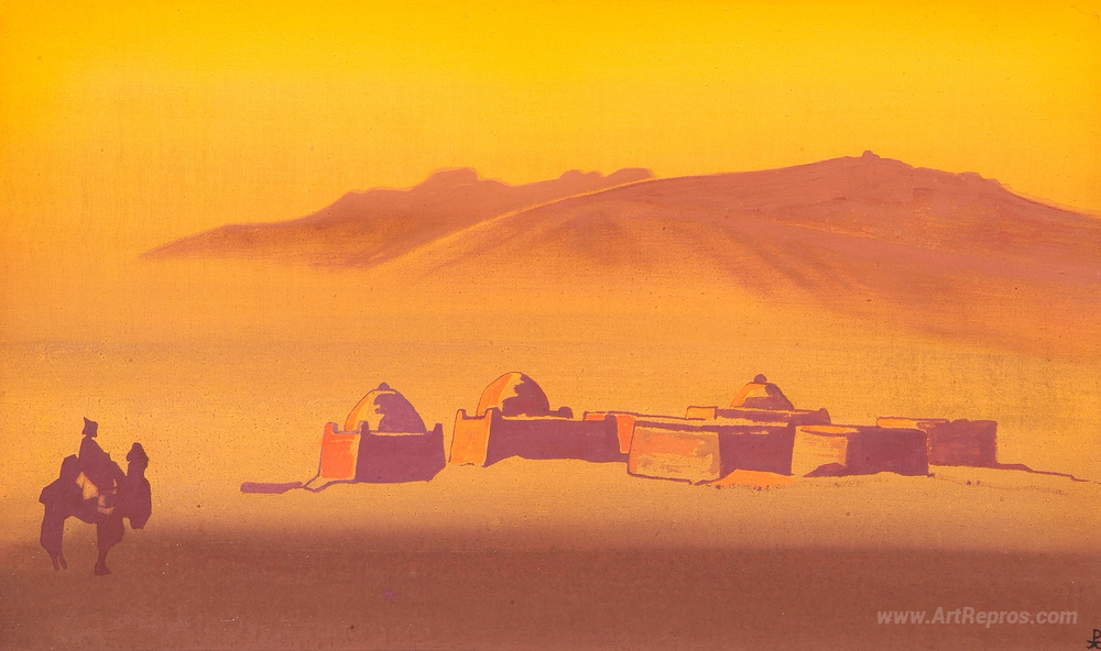 We offer you a handcrafted reproduction on canvas of the famous artwork 'Kara-Kirghizians' by Nicholas Roerich, from the Reproduction Museum.