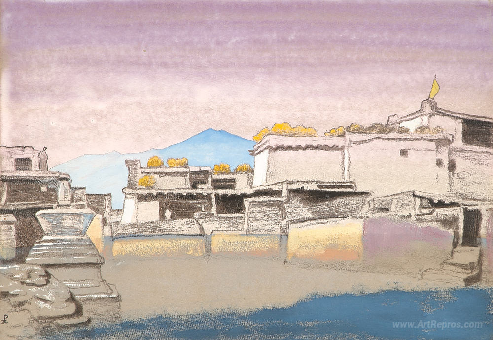 Kardang (study) embodies the essence of Roerich's signature style, characterized by vibrant hues and dynamic compositions that invite the viewer into a world of serenity and mystique. Utilizing classical techniques, Roerich skillfully captures the interplay of light and landscape, evoking emotions that resonate deeply. Displaying this painting not only enhances your interior decor but also sets a tranquil atmosphere, inspiring contemplation and appreciation in your living space.