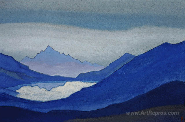 We offer you a handcrafted reproduction on canvas of the famous artwork 'Lake in the mountains' by Nicholas Roerich, from the Reproduction Museum.