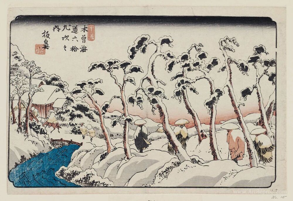 We offer you a handcrafted reproduction on canvas of the famous artwork 'No. 15, Itahana, from the series The Sixty-nine Stations of the ' by Keisai Eisen, from the Reproduction Museum.