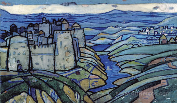 We offer you a handcrafted reproduction on canvas of the famous artwork 'Northern landscape with fortress' by Nicholas Roerich, from the Reproduction Museum.