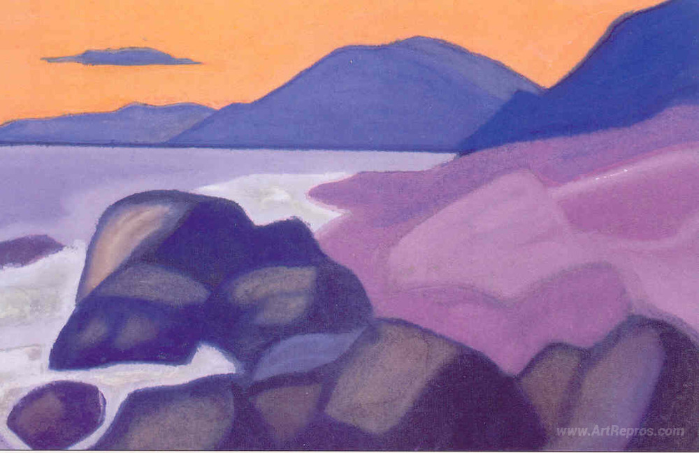 We offer you a handcrafted reproduction on canvas of the famous artwork 'On the lake Shop Pangalo' by Nicholas Roerich, from the Reproduction Museum.