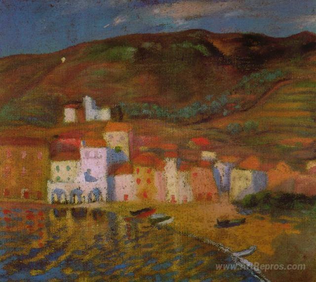 We offer you a handcrafted reproduction on canvas of the famous artwork 'Portdogue and Mount Pani from Ayuntamiento' by Salvador Dali, from the Reproduction Museum.
