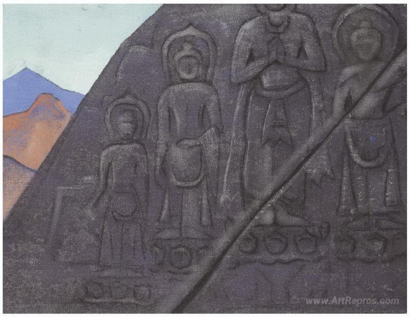 We offer you a handcrafted reproduction on canvas of the famous artwork 'Rock Relief of Buddha' by Nicholas Roerich, from the Reproduction Museum.