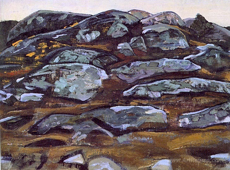 We offer you a handcrafted reproduction on canvas of the famous artwork 'Rocks (Karelia)' by Nicholas Roerich, from the Reproduction Museum.
