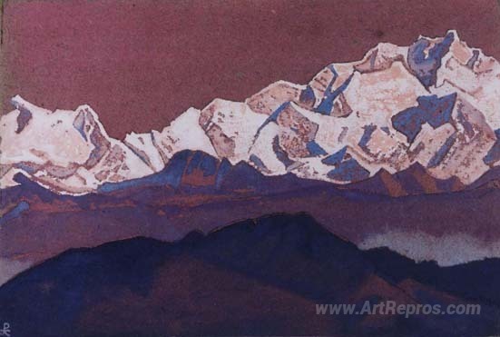 We offer you a handcrafted reproduction on canvas of the famous artwork 'Rocky peaks. Himalayas.' by Nicholas Roerich, from the Reproduction Museum.