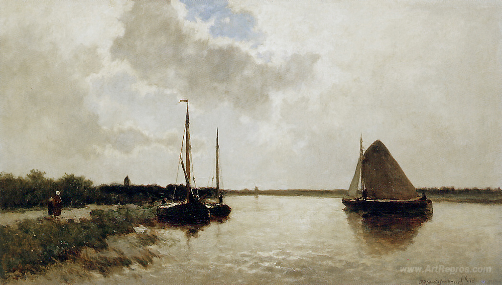 Welcome to our exclusive collection of oil paintings, where artistry and passion converge. Featured prominently is the exquisite piece Ships on Canal by the renowned artist Johan Hendrik Weissenbruch. A celebrated figure in the 19th-century Dutch art scene, Weissenbruch masterfully captures the serene beauty of maritime life and the captivating reflections on water, transporting viewers into a tranquil world of charm and historical elegance.