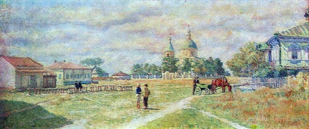 We offer you a handcrafted reproduction on canvas of the famous artwork 'Square in the village Mikhailovskaya' by Ilya Mashkov, from the Reproduction Museum.