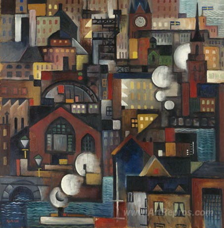 We offer you a handcrafted reproduction on canvas of the famous artwork 'Stockholm from the studio' by Gosta Adrian-Nilsson, from the Reproduction Museum.