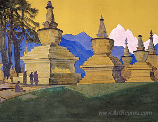 We offer you a handcrafted reproduction on canvas of the famous artwork 'Suburgan of Tashiding' by Nicholas Roerich, from the Reproduction Museum.