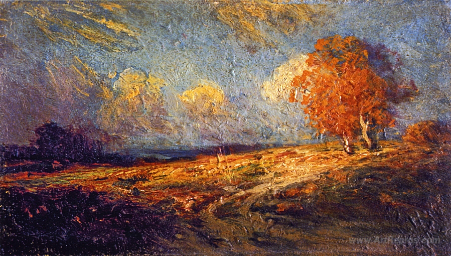We offer you a handcrafted reproduction on canvas of the famous artwork 'Sunlit Hillside' by Robert Julian Onderdonk, from the Reproduction Museum.