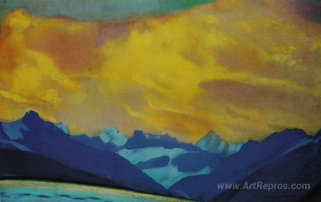 We offer you a handcrafted reproduction on canvas of the famous artwork 'Sunset over Malana' by Nicholas Roerich, from the Reproduction Museum.