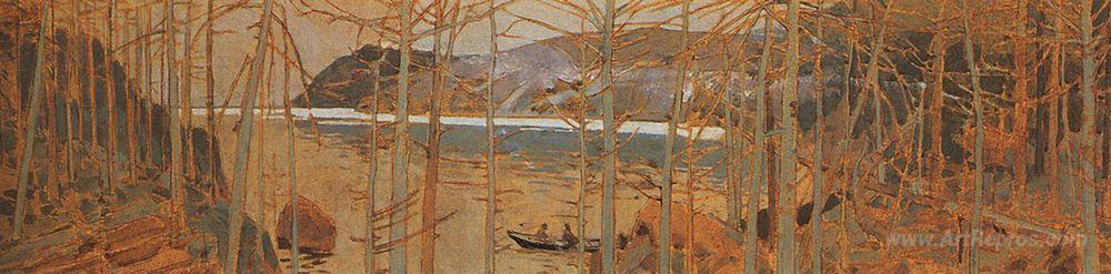 We offer you a handcrafted reproduction on canvas of the famous artwork 'Taiga near Baikal ' by Konstantin Korovin, from the Reproduction Museum.