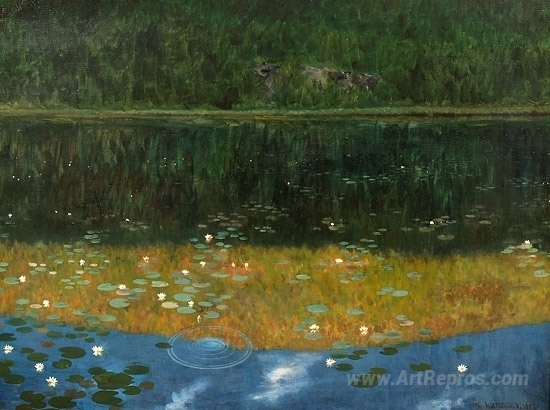 We offer you a handcrafted reproduction on canvas of the famous artwork 'The pond' by Theodor Severin Kittelsen, from the Reproduction Museum.