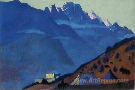We offer you a handcrafted reproduction on canvas of the famous artwork 'Tibetian camp. Keilang.' by Nicholas Roerich, from the Reproduction Museum.