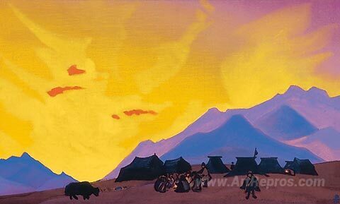 We offer you a handcrafted reproduction on canvas of the famous artwork 'Tibetian camp' by Nicholas Roerich, from the Reproduction Museum.