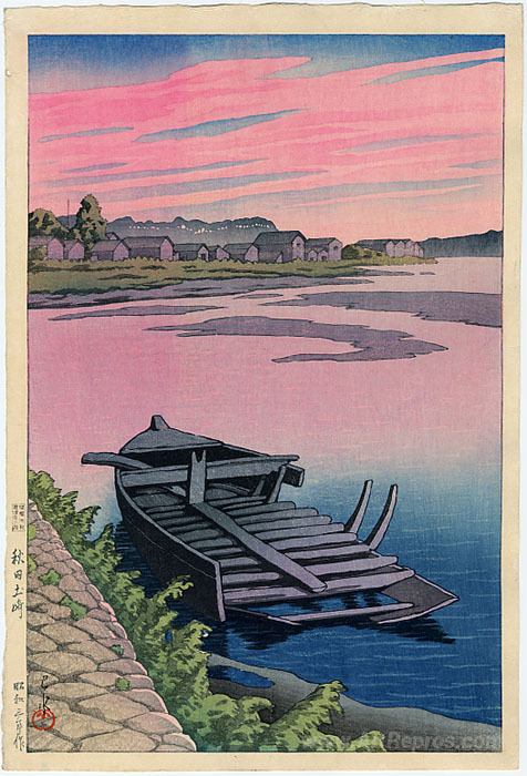 We offer you a handcrafted reproduction on canvas of the famous artwork 'Tsuchizaki, Akita' by Hasui Kawase, from the Reproduction Museum.