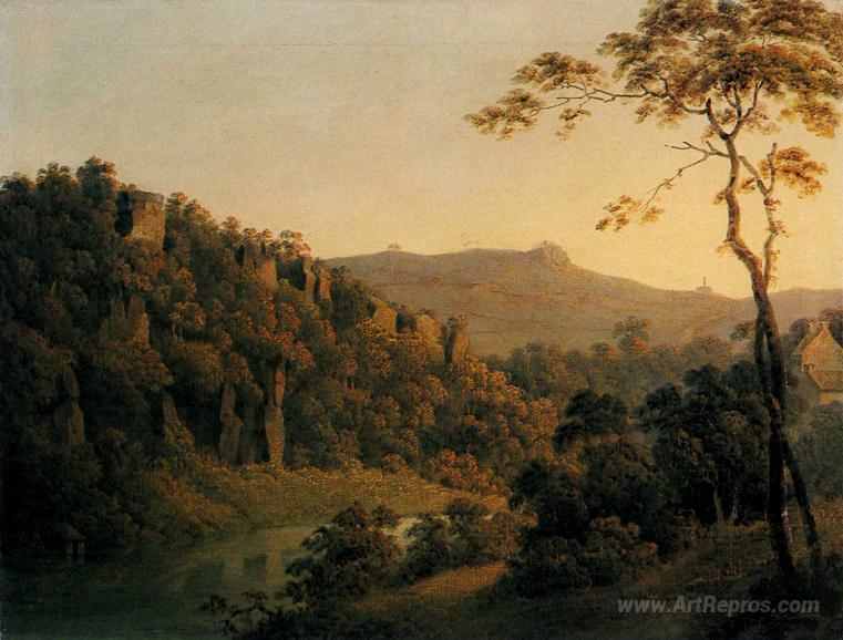 Welcome to our exclusive collection of oil paintings, where each masterpiece tells a unique story and transforms the ambiance of your space. Explore the breathtaking work of Joseph Wright, an esteemed English painter known for his dramatic use of light and shadow that captivates viewers. His remarkable talent shines through in the enchanting piece, View in Matlock Dale, Looking Towards Black Rock Escarpment, which beautifully captures the serene beauty of nature while inviting contemplation and tranquility into your environment.